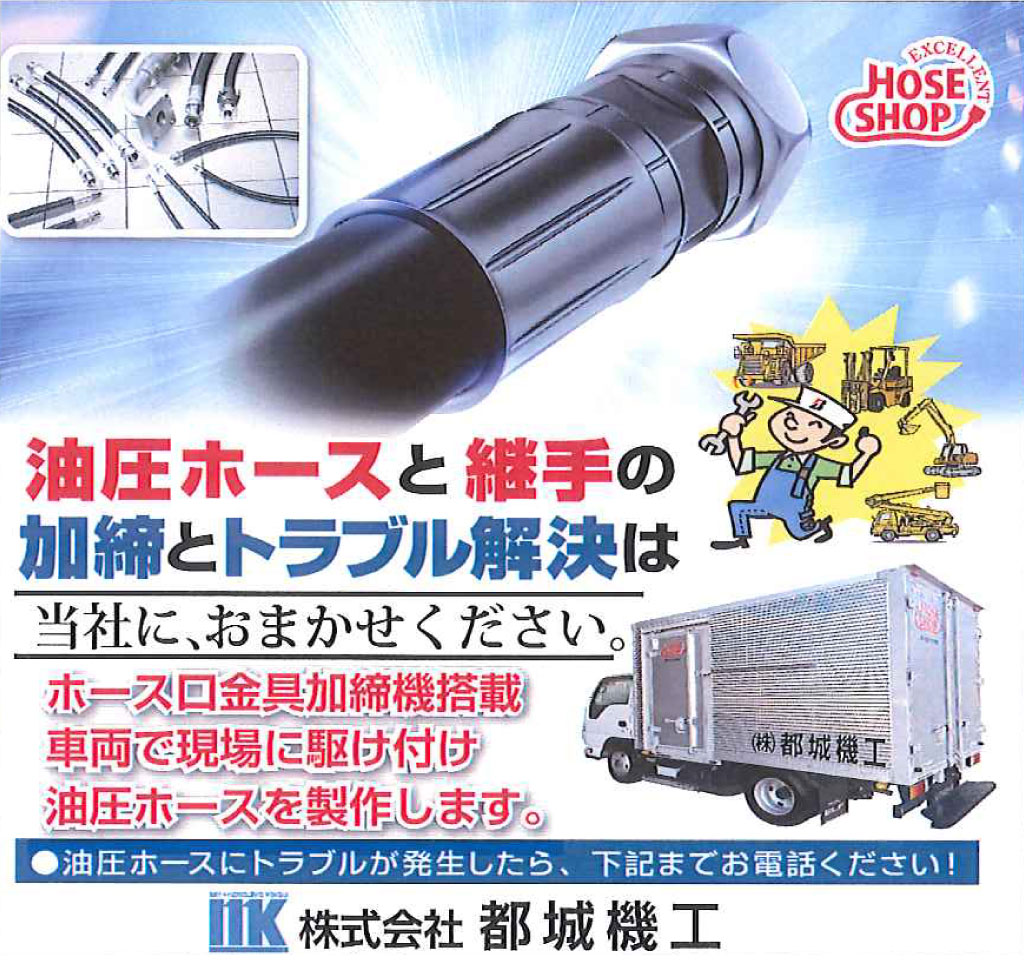 油圧・高圧ホースと継手の加締とトラブル解決は当社にお任せください。